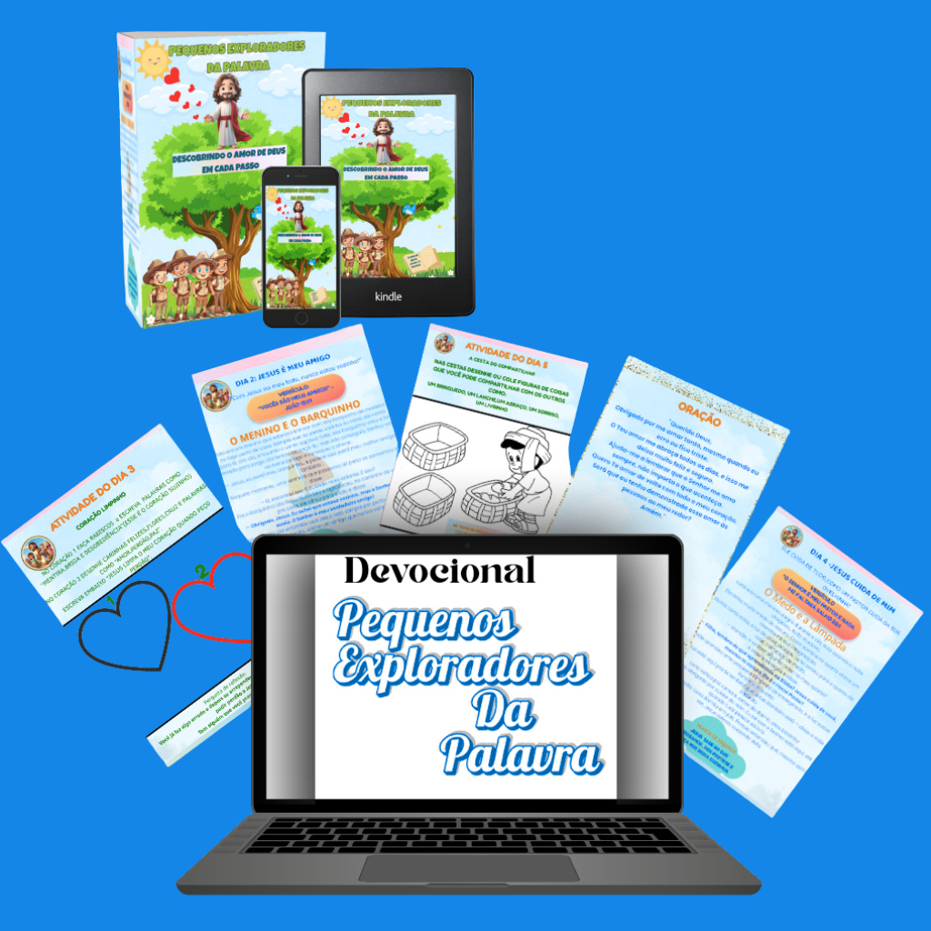 Devocional "Pequenos Exploradores da Palavra "Um guia divertido e inspirador para aproximar as crianças de Deus todos os dias. Com versículos, reflexões e atividades lúdicas, transforma momentos em família em experiências cheias de fé e amor. ❤️